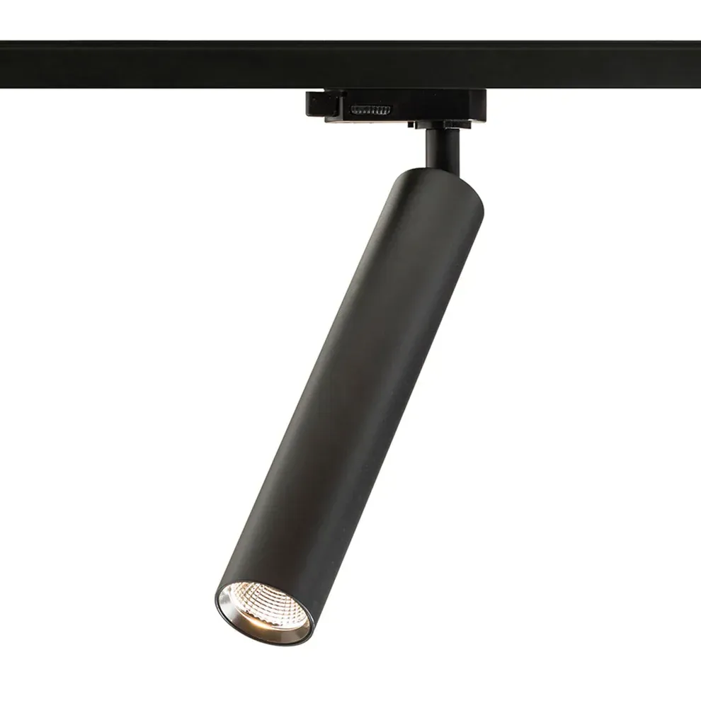 De 3-fase spot Darrin is een moderne en elegante railspot met een slank, cilindervormig design. Deze minimalistische spot in mat zwart is perfect voor wie op zoek is naar strakke en gerichte verlichting met een hoogwaardige uitstraling.
