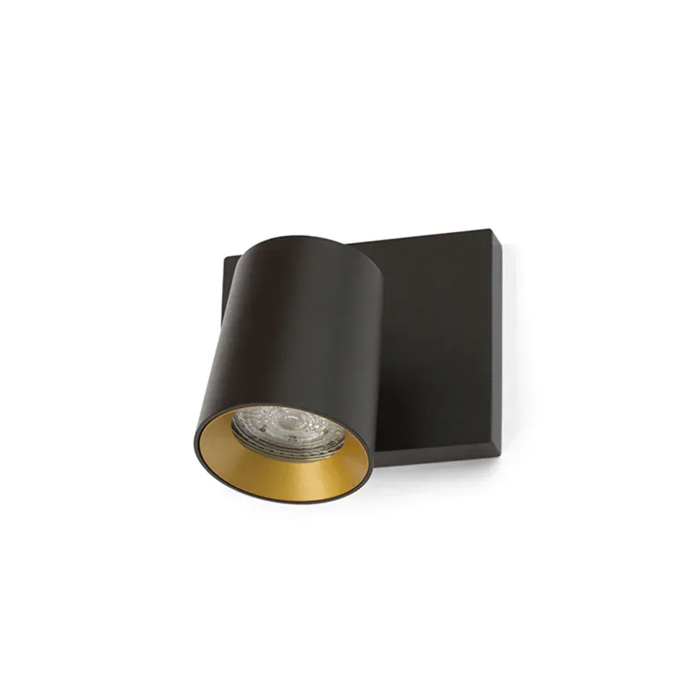De Kenny wand/plafondlamp is een moderne, verstelbare spot in zwart met gouden binnenzijde. Geschikt voor wand- en plafondmontage en perfect voor sfeervolle verlichting.