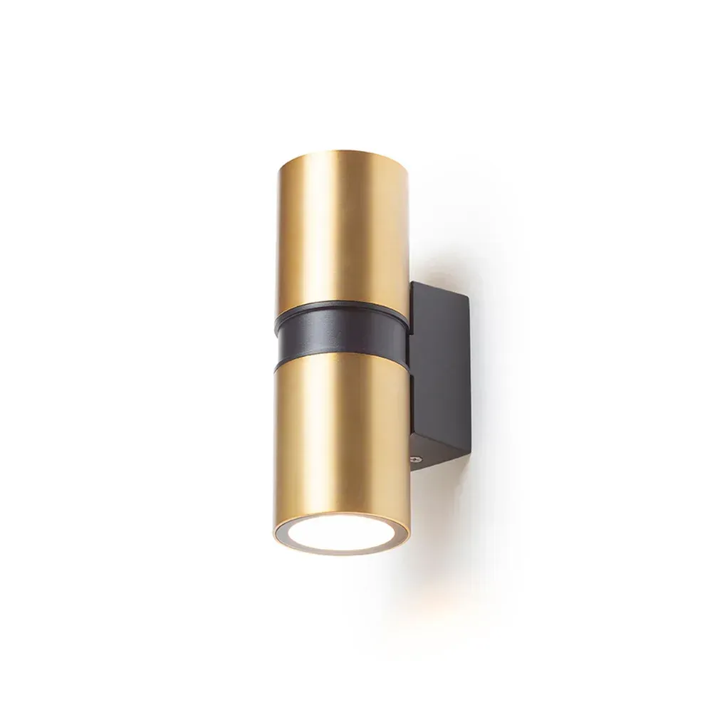 De Mano buitenlamp is een moderne up & down wandlamp in goud en zwart. Perfect voor sfeervolle en stijlvolle verlichting van gevels, terrassen en entrees.