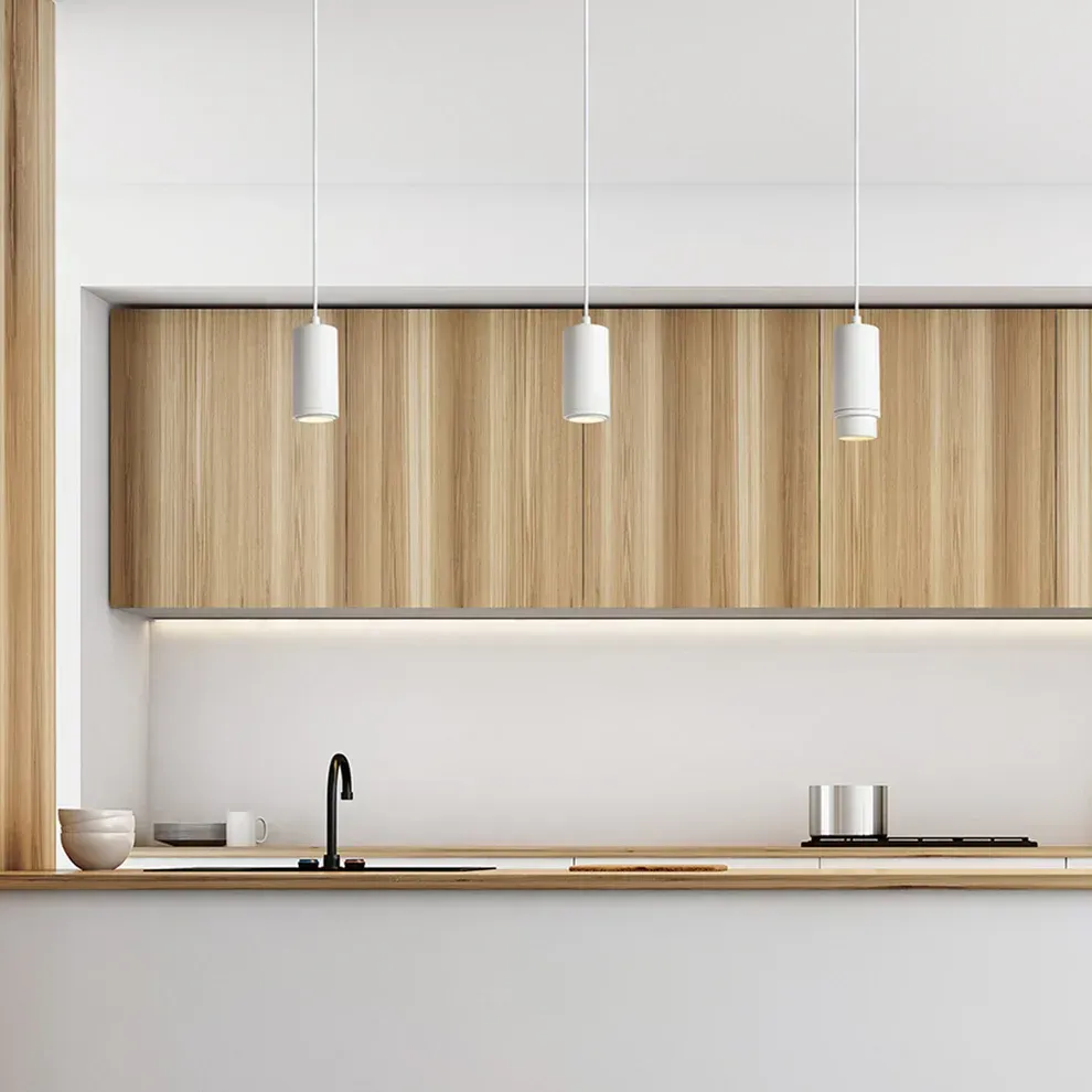 Cilindrische hanglamp met verstelbare lichtstraal tussen 10-50° met zogenaamde zoom functie. De hanglamp heef een GU10 fitting voor LED lichtbronnen. Om ongewenste schaduwen te voorkomen zijn lichtbronnen met een stralingshoek van 120° aanbevolen.