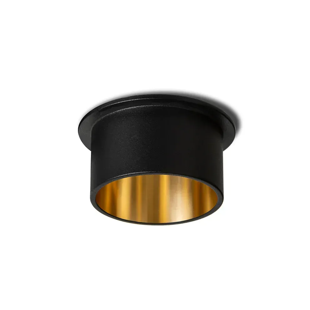 De Orta spot is een moderne plafondspot in zwart met een gouden binnenzijde. Zorgt voor warm, sfeervol licht en is perfect voor elk modern interieur.